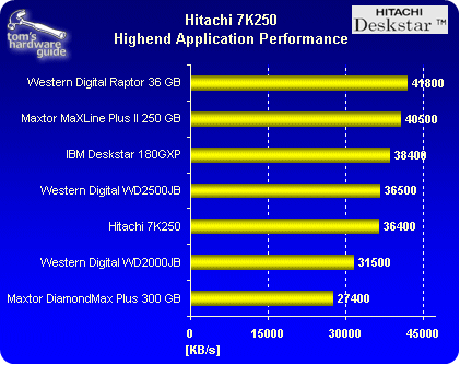 I business-testen vandt Hitachi som hos Toms Hardware og var 15% og 16% hurtigere end hhv. WD og Maxtor. I high-end testen vandt Maxtor og var 9% og 18% hurtigere end Hitachi og WD. Dvs., at der hos Toms Hardware er enighed om, at Hitachi vinder i business-testen, mens Maxtor vinder high-end testen. Næste punkt bliver varme:
