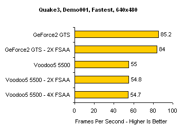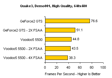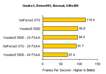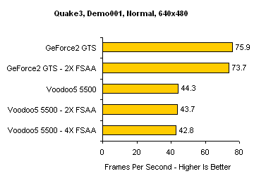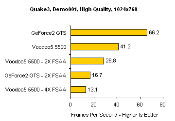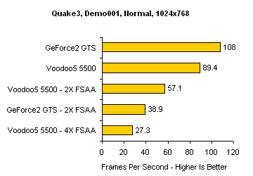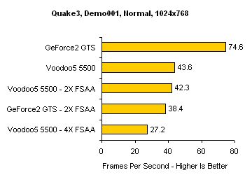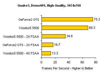 Selv i 1024 x 768 NORMAL lykkedes det stadig V5 5500 at sutte et par fodbolde gennem haveslangen ("A Truly Incredible Performance"...GF2 gør din computer 71% hurtigere end med V5 uden FSAA)